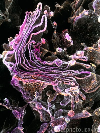 Образован комплексом биологических мембран в виде узких каналов, расширяющихся на концах в цистерны, от которых отпочковываются пузырьки. Каналы напоминают стопку наложенных друг на друга рулонов (диктиосом). |