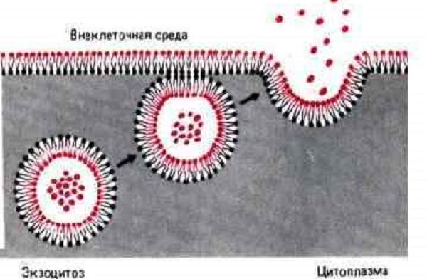 Внутриклеточная везикула сливается с липидным бислоем плазматической мембраны открывается во внеклеточное пространство. |